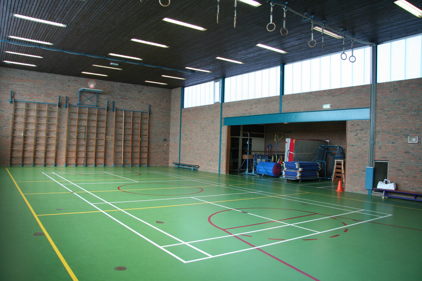(Sport)mogelijkheden: Badminton, Basketbal, Korfbal, Volleybal, Zaalvoetbal volwassenen (6 à 8 personen), Zaalvoetbal kinderen (8 à 10 personen).