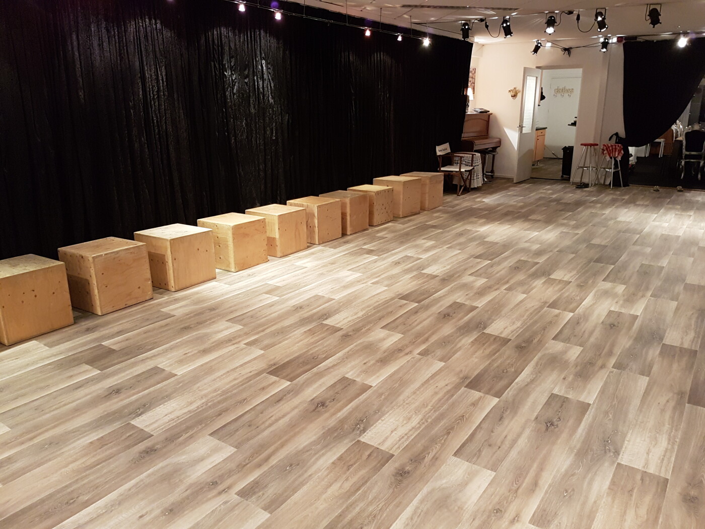 Er is een piano aanwezig, evenals een licht- en geluidsinstallatie.